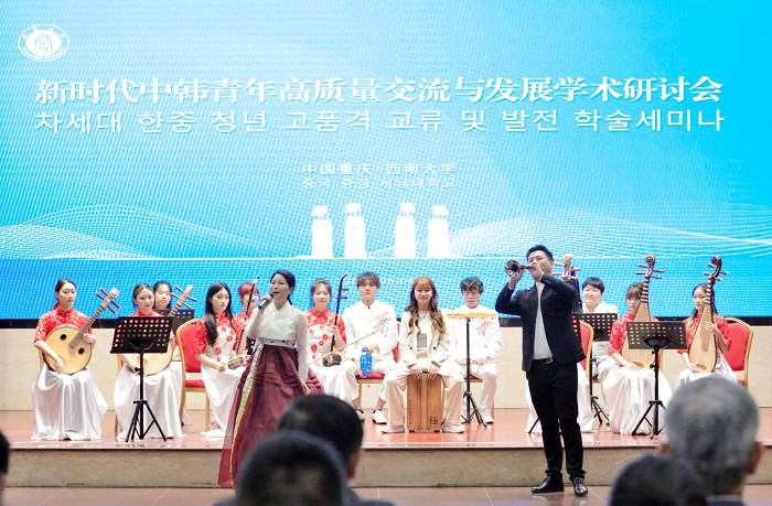 近日,新时代中韩青年高质量交流与发展学术研讨会在学校举办。会议由学校马克思主义学院、韩国延世大学中国研究院、韩国仁荷大学国际关系研究所共同主办。教育部国际合作与交流司副司长贾鹏、韩国国会环境劳动委员会委员长朴钉视频致辞,韩国驻成都总领事馆总领事严元载,学校党委副书记、马克思主义学院院长潘洵出席开幕式并致辞。来自延世大学、仁荷大学、复旦大学、延边大学、辽宁大学、延安大学等高校的中韩两国专家学者、在渝韩国留学生会代表,以及学校相关部门负责人参加会议。会议由马克思主义学院党委书记吴文杰主持。