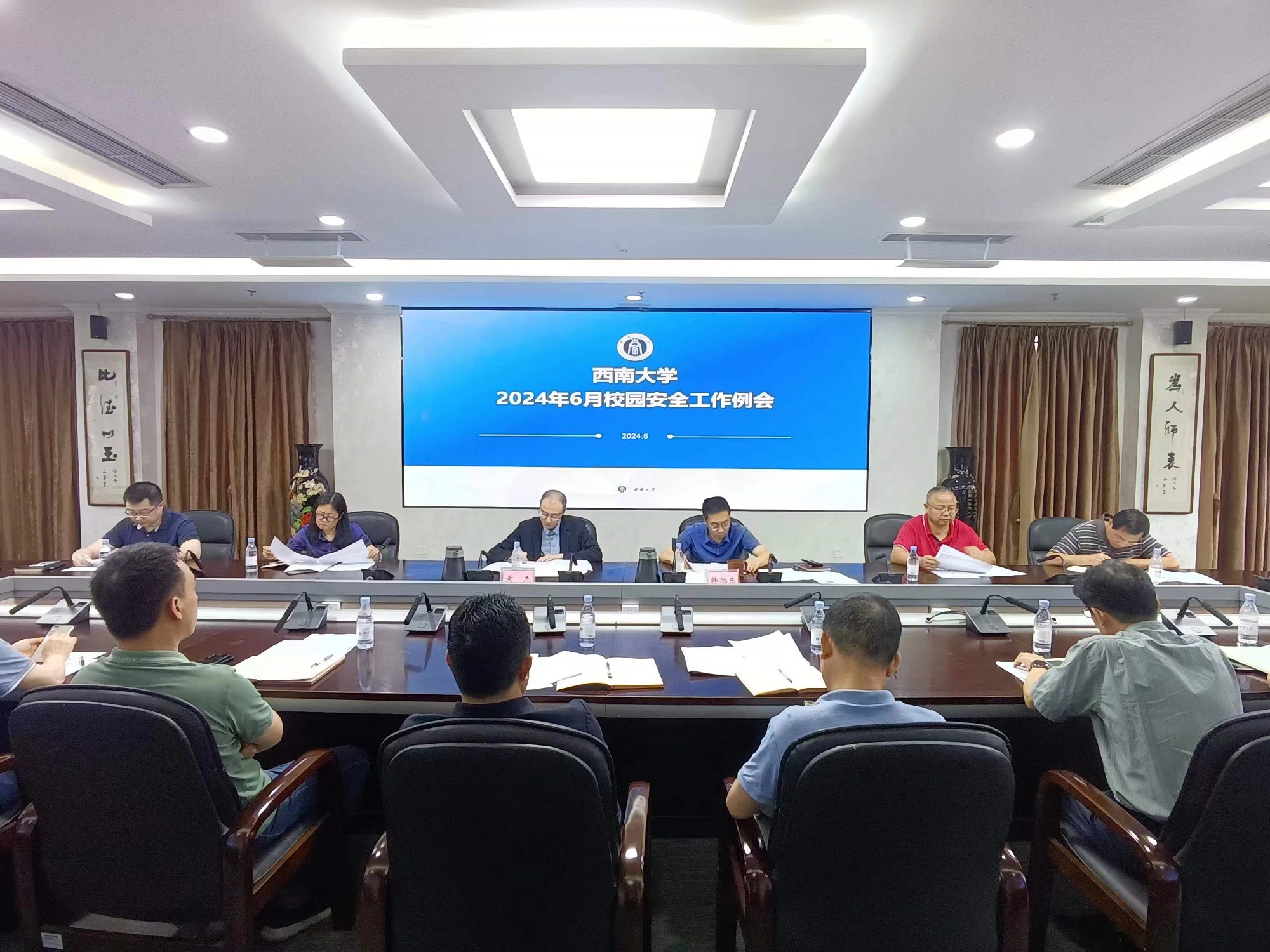 6月24日上午,学校6月校园安全工作例会在行署楼A栋第五会议室召开。学校党委副书记黄杰、副校长韩旭东出席会议,相关职能部门负责人参会。会议由黄杰主持。