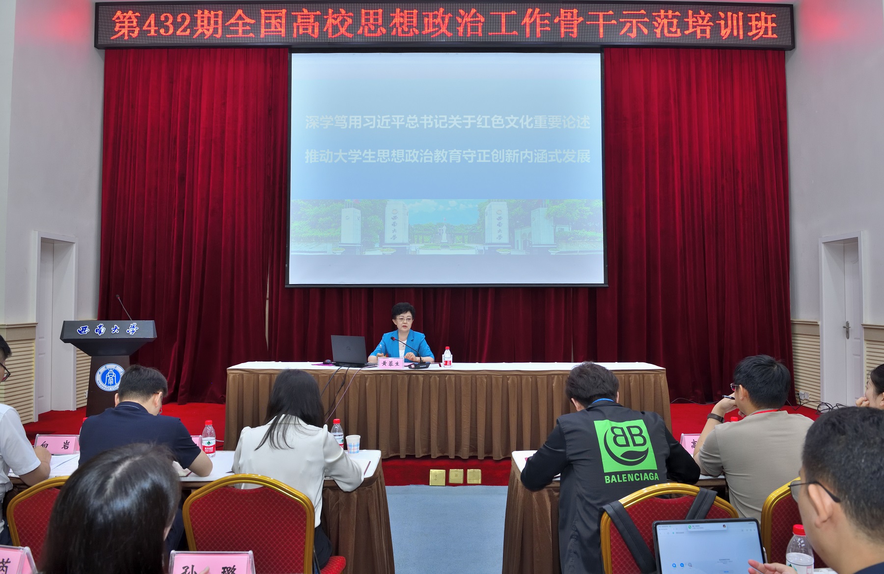 开班仪式结束之后,黄蓉生教授作题为“深学笃用习近平总书记关于红色文化重要论述 推动大学生思想政治教育守正创新内涵式发展”的首场专家报告。