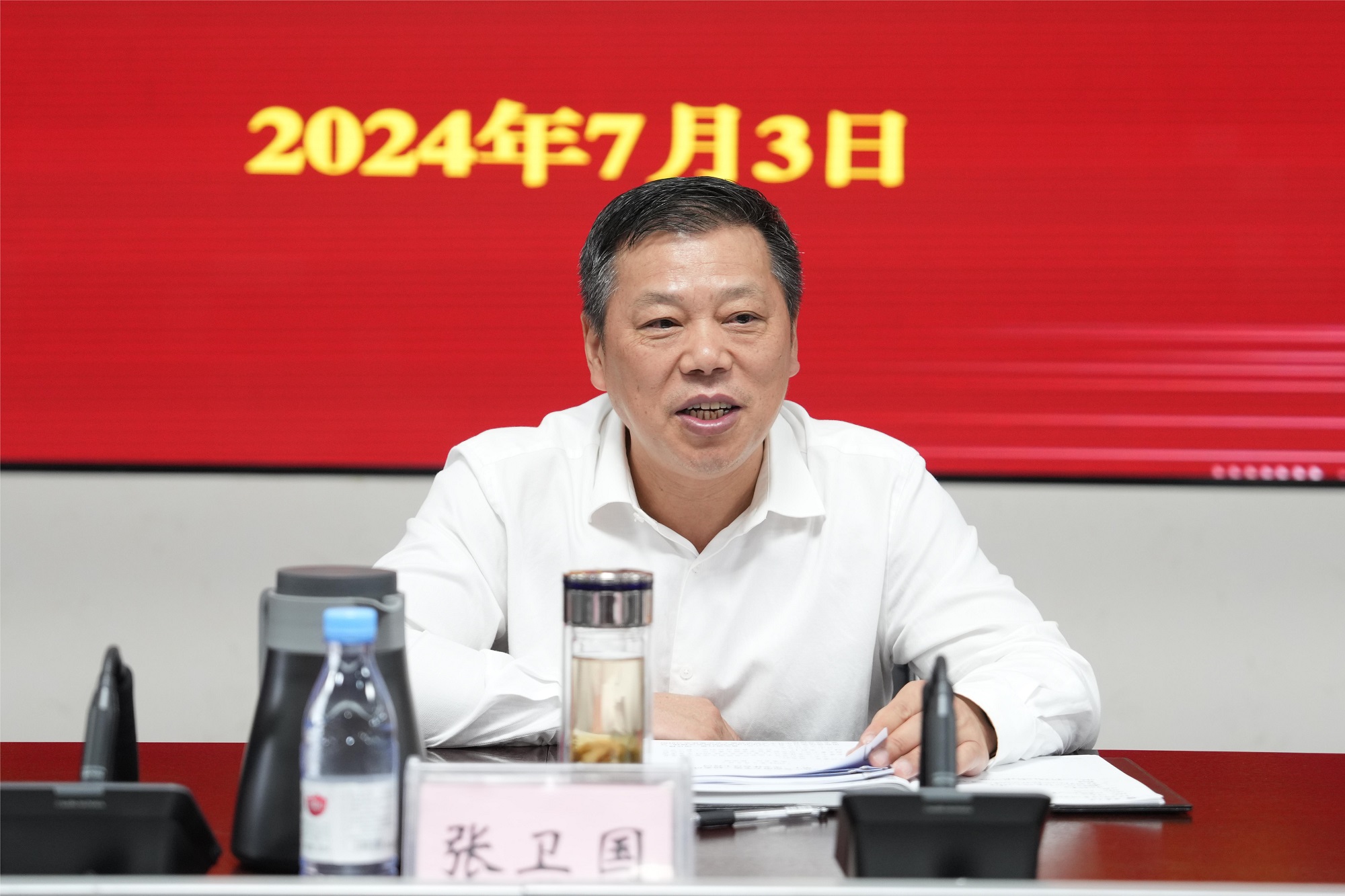 张卫国强调,党的二十届三中全会即将召开,进一步全面深化改革、推进中国式现代化建设的号角已经吹响,要更加紧密地团结在以习近平同志为核心的党中央周围,坚持以习近平新时代中国特色社会主义思想为指导,以更加昂扬的奋进姿态、更加务实的工作状态,着眼长远、深化改革、锐意进取、狠抓落实,为早日建成高水平研究型大学不懈奋斗。