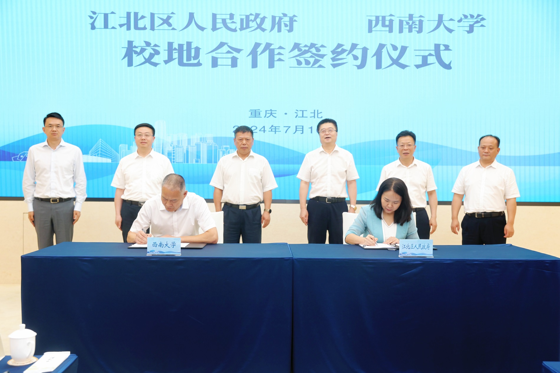 7月10日,bat365正版唯一官网、江北区人民政府校地合作签约仪式在江北区行政服务中心举行。江北区委书记滕宏伟,区长陶世祥,区委副书记张才明,副区长吴亚莉,区政府党组成员陈静;学校党委书记张卫国,党委副书记、纪委书记夏玉峰,副校长葛信勇出席仪式。