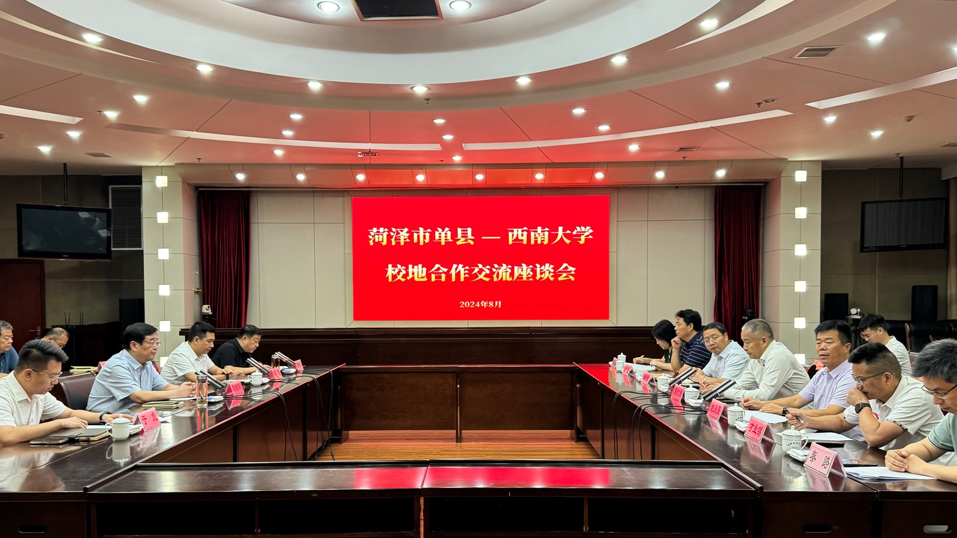 8月18日至19日,副校长葛信勇带队赴山东菏泽市考察调研,召开校地合作交流座谈会,与菏泽市委常委、组织部部长王军,菏泽市政协副主席、单县县委书记耿振华,单县县委副书记、县长魏传永等领导座谈交流。