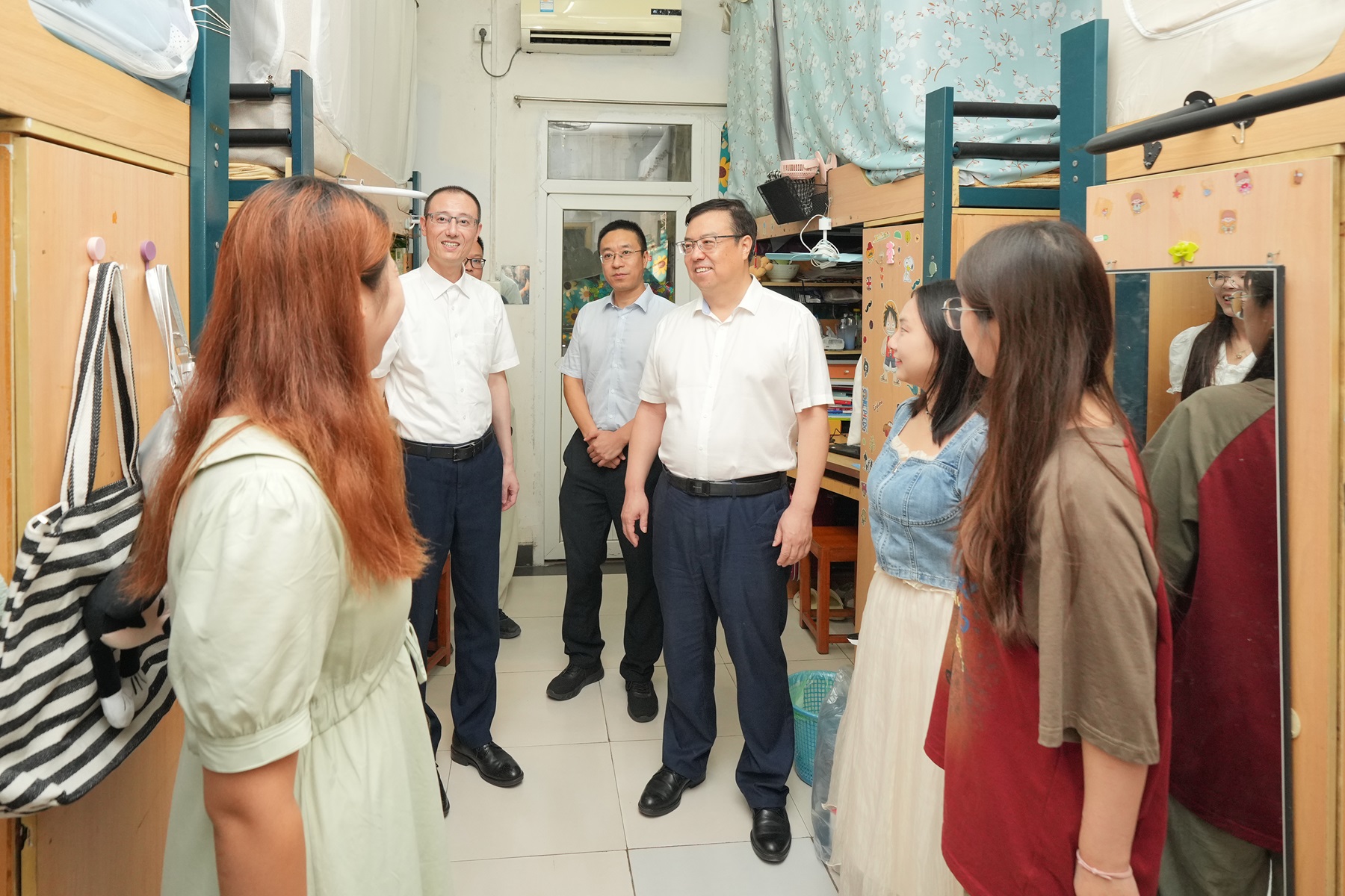 党委书记张卫国、校长王进军分别带队前往学校安全指挥中心、校内交通转运站、学院(部)分散报到点、学生生活园区等地检查指导迎新工作,对工作人员和学生志愿者的辛勤付出表示肯定,叮嘱大家为新生提供细致周到的服务。在各迎新服务点和学生寝室,张卫国、王进军与新生亲切交流,关心报到是否顺利,询问他们的家乡与专业,勉励大家尽快适应大学生活,珍惜时光,努力奋斗。