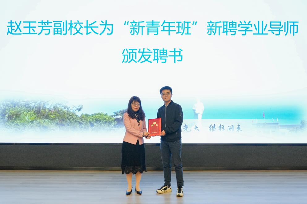 会上,赵玉芳为“新青年班”新聘学业导师颁发了聘书。