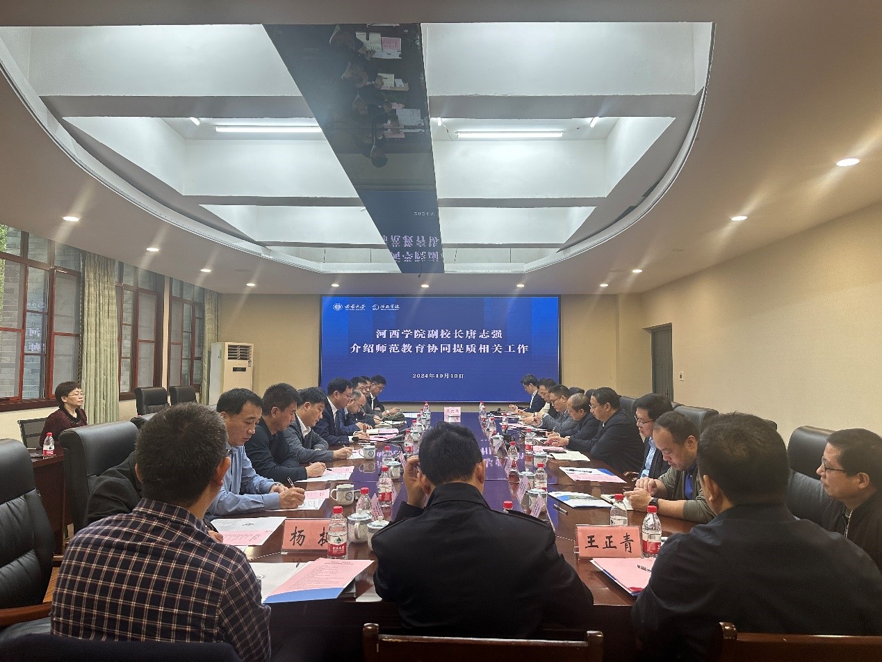 10月10日,河西学院副校长唐志强带队来校对接师范教育协同提质工作,开展河西学院硕士研究生导师、教学管理骨干能力提升培训暨本科生研学活动。学校副校长周光明出席开班仪式和座谈交流会。两校相关职能部门、学院负责人参加活动。