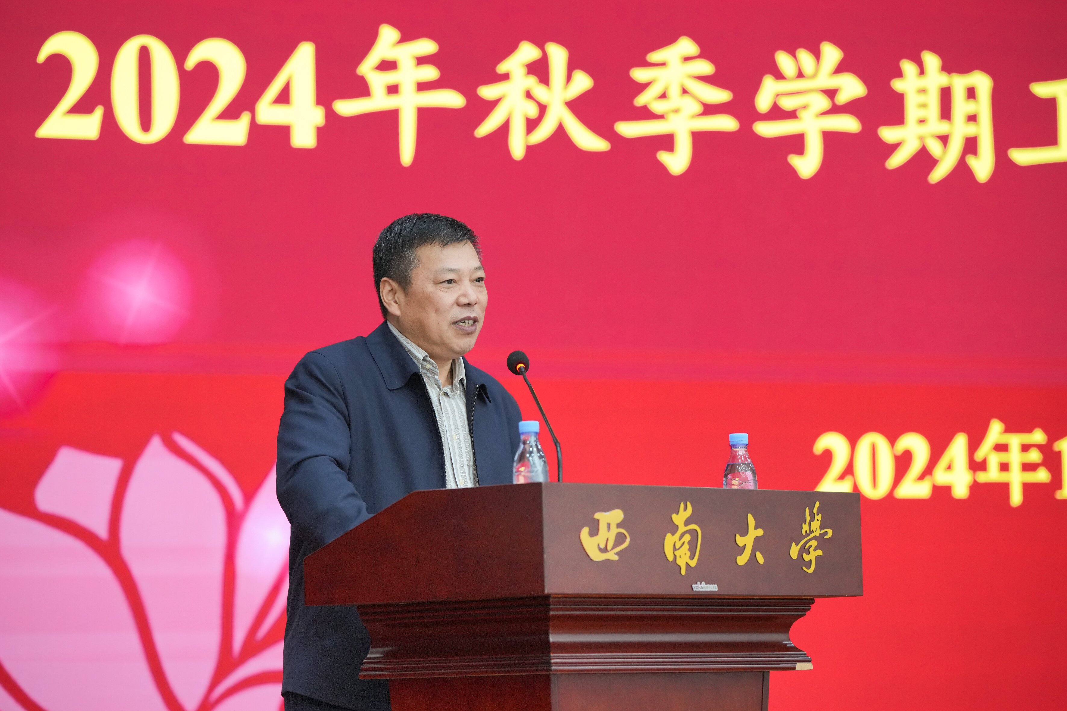 张卫国回顾了上半年学校事业发展取得的成绩,就秋季学期15项重点工作安排进行了详细通报。他表示,学校将坚持以习近平新时代中国特色社会主义思想为指导,聚焦教育强国建设,进一步深化综合改革,加快“双一流”建设,探索教育科技人才体制机制一体改革的西大路径,打造具有西大辨识度的改革成果,为建设高水平研究型大学奠定坚实基础。