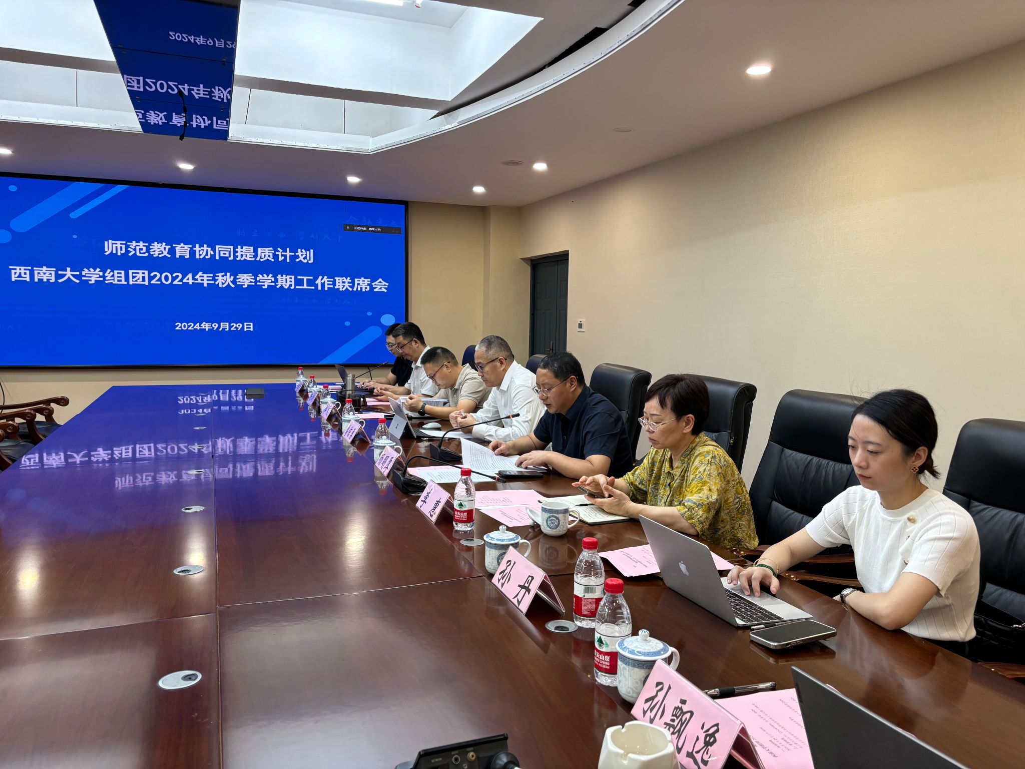 2024年9月29日上午,师范教育协同提质计划bat365正版唯一官网组团2024年秋季学期工作联席会议在教师教育学院召开。bat365正版唯一官网、新疆师范大学、山东师范大学、重庆师范大学、和田师范专科学校、河西学院、长江师范学院相关校领导及有关职能部门负责人出席会议。会议以线上线下相结合的方式举行。