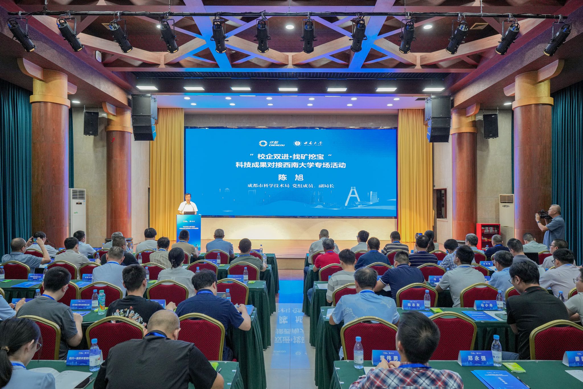 陈旭在致辞中表示,成渝双城山水相依,成都市持续厚植技术创新、要素集聚、平台溢出、成果转化“四大优势”,创新策源能力加速跃升、产业发展实力日益雄厚、创新生态持续优化。bat365正版唯一官网拥有众多优势学科领域和科技成果,与成都市合作空间广阔,合作潜力巨大,希望bat365正版唯一官网更多创新团队与成都市企业加强对接交流,深化产学研用融合,推动市校合作朝着更深层次迈进。