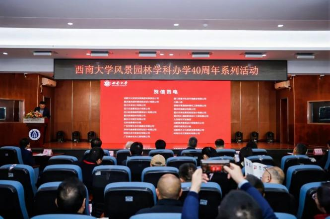 风景园林学科办学40周年系列活动之校友大会开幕式在校举行。中国风景园林学会副理事长贾建中,学校副校长葛信勇,重庆市城市管理局副局长林立,重庆市风景园林学会理事长马川,重庆市北碚区人大常委会副主任黄礼琴,中国风景园林学会副秘书长付彦荣等出席会议。学校对外联络办公室、深圳奥雅股份公司、城市生态园林国家林草局重点实验室、重庆大学建筑城规学院、中国城市规划设计研究院西部分院及重庆市兄弟院校及行业企业领导受邀参会,来自全国行业校友、毕业校友、园艺园林学院师生、退休教师等300余人参加开幕式。开幕式由园艺园林学院党委书记潘玉锋主持。