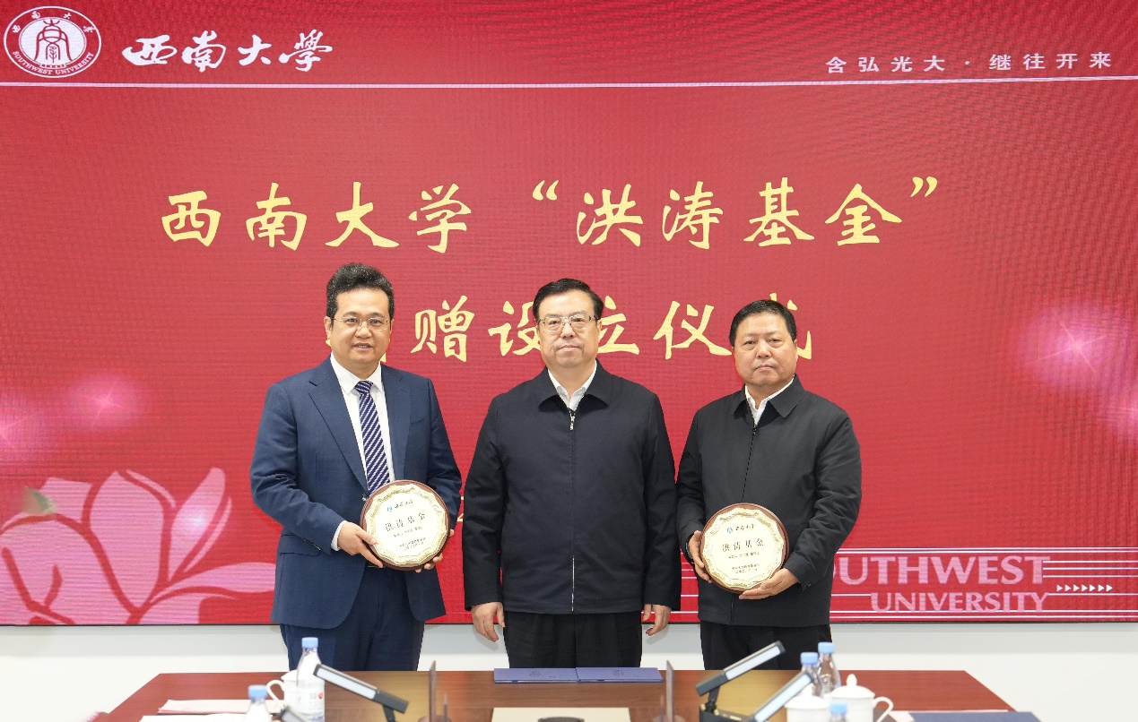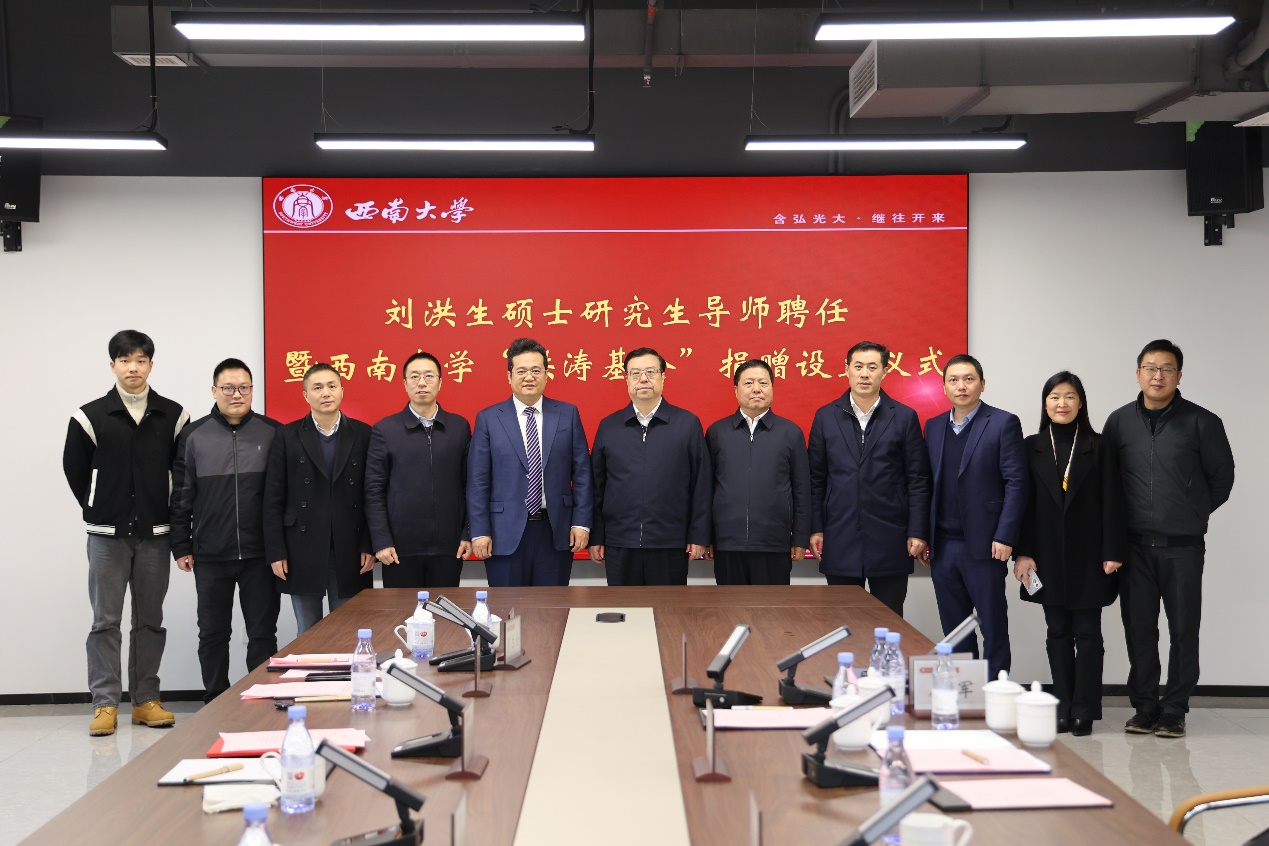 刘洪生、董涛江两位基金发起人此次向bat365正版唯一官网首期捐赠40万元设立“洪涛基金”。仪式上,王进军为刘洪生颁发硕士研究生导师聘书,刘洪生向教育基金会赠送亲笔书写的书法作品。双方签订了捐赠协议、交接了捐赠支票,王进军代表学校向刘洪生、董涛江颁发了捐赠荣誉证书和基金设立纪念牌。