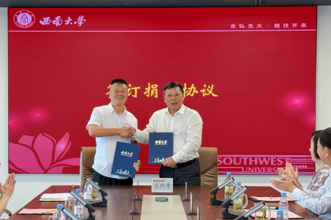 9月29日,校友企业重庆华美电力设备有限责任公司向bat365正版唯一官网捐赠仪式在学校举行。重庆市人大常委会副主任、民建中央副主席、重庆市委主委沈金强,民建中央委员、重庆市政协常委刘伟,民建市委会副主委、bat365正版唯一官网经济管理学院教授黄俊,大渡口区政协副主席王秀琼,民建市委会委员徐彤彤,bat365正版唯一官网党委书记张卫国、副校长葛信勇,“华美励志奖学金”发起人、bat365正版唯一官网1996级校友、重庆华美电力设备有限责任公司董事长徐建等出席会议。学校对外联络办公室、基本建设管理处、助学中心、民建bat365正版唯一官网总支相关负责人参加会议。