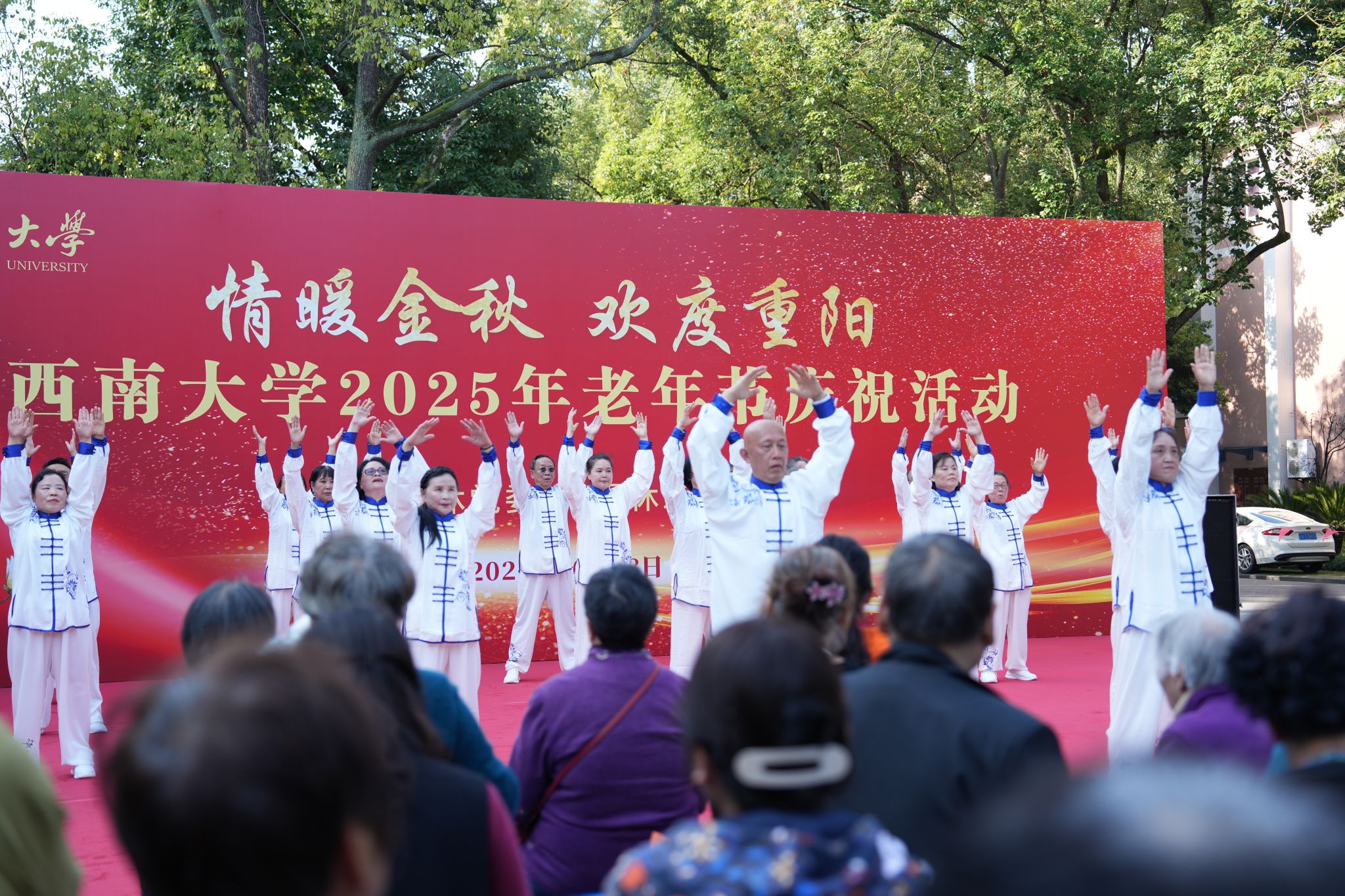 10月28日,在学校国旗台广场,千余名离退休教职工欢聚一堂,参加由离退休党委、离退休工作处主办的“情暖金秋 欢度重阳”老年节庆祝活动。党委副书记武好明出席,离退休工作处处长鲁森主持活动。