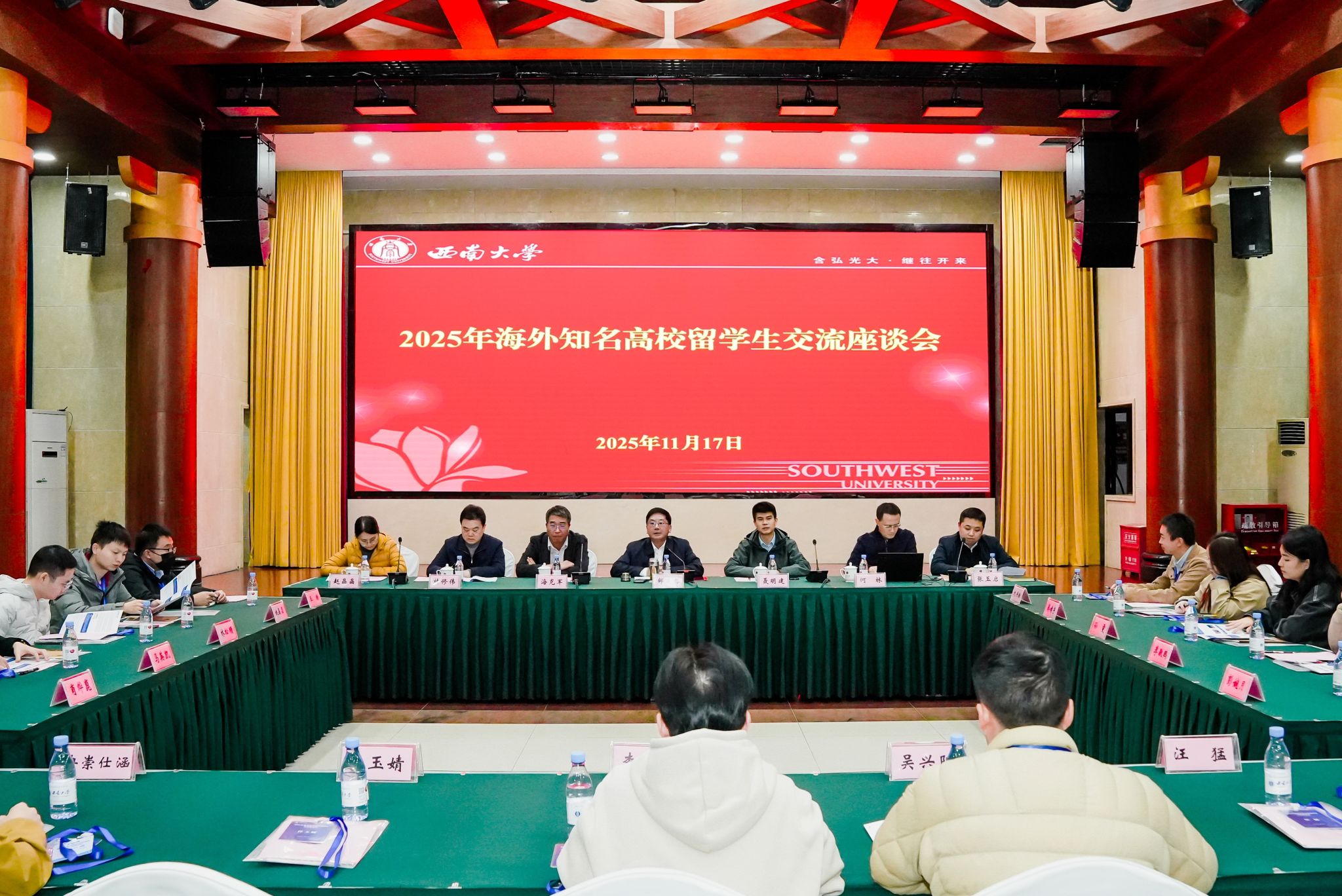 为深入贯彻落实人才强校战略,11月17日,学校邀请新加坡国立大学、英国帝国理工学院等13所学校的45名留学生来校交流,并在东方红会议厅举办2025年海外知名高校留学生交流座谈会。副校长邹芙都,重庆欧美同学会秘书处处长聂明建出席会议。