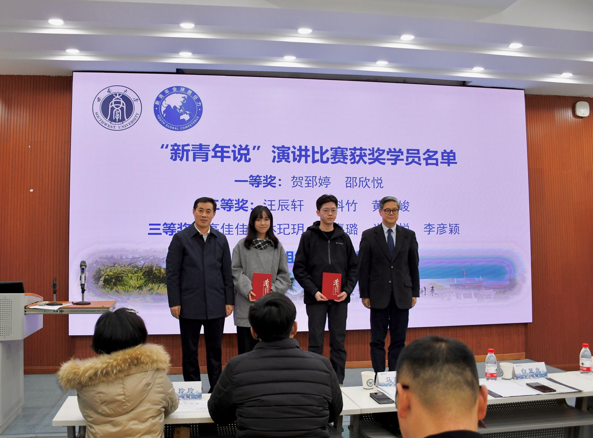 11月18日,bat365正版唯一官网“新青年全球胜任力培养项目班”第三届结业仪式暨第四届开班仪式顺利举行,副校长白显良,中国教育国际交流协会新青年全球胜任力人才培养计划专家指导委员会主任马燕生、项目主任王瑶出席;学校团委、招生办公室、研究生院、学生工作处、国际合作与交流处等相关单位负责人,国家治理学院及全球胜任力研修中心的相关负责人及教师代表,以及第三届、第四届“新青年班”全体学员参加仪式。