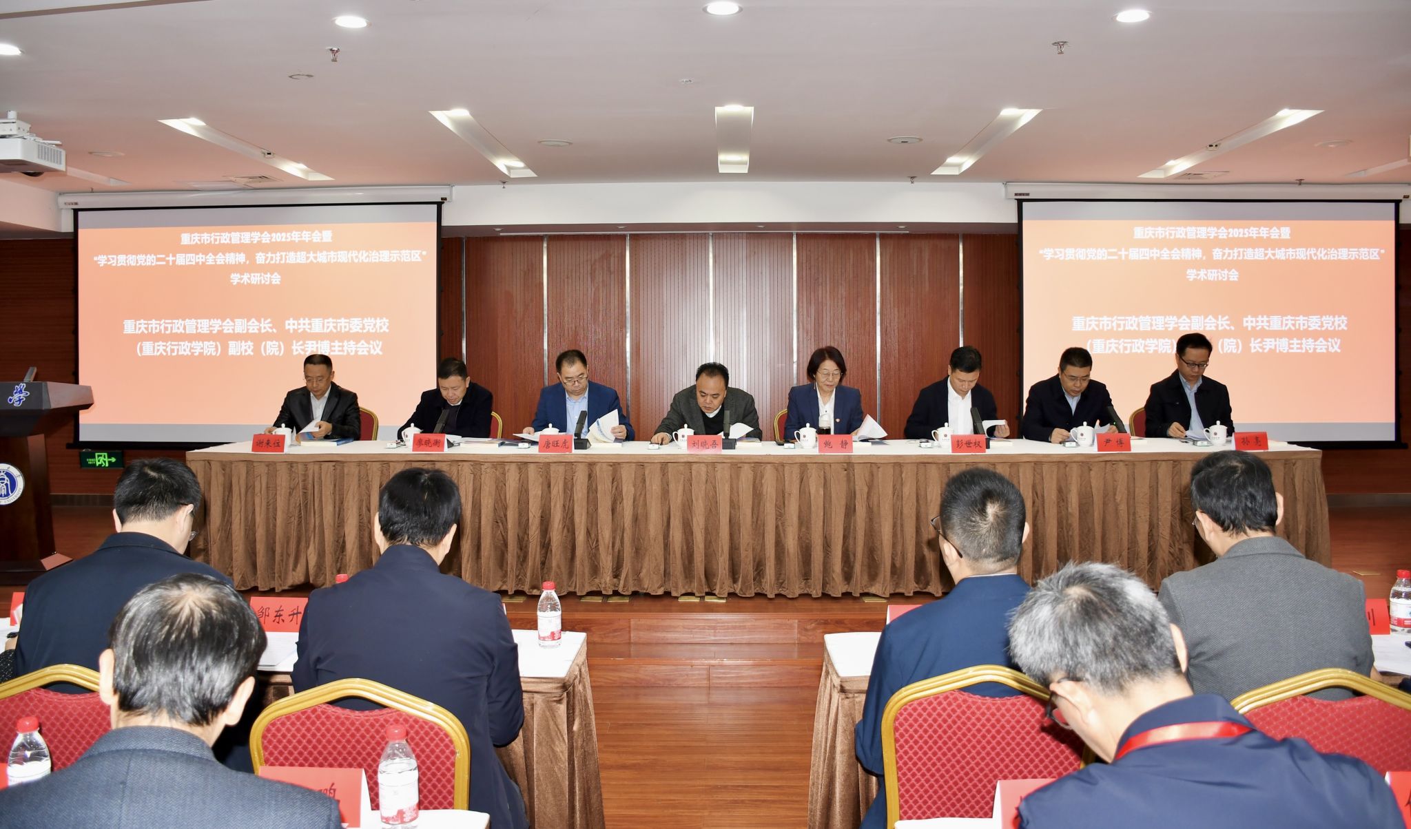11月15日,由重庆市委党校、bat365正版唯一官网主办的重庆市行政管理学会2025年学术年会暨“学习贯彻党的二十届四中全会精神 奋力打造超大城市现代化治理示范区”学术研讨会在学校举办。中国行政管理学会副会长鲍静,重庆市委党校常务副校长、重庆市行政管理学会会长刘晓吾,北碚区委副书记彭世权,重庆市社会科学界联合会副主席唐旺虎,重庆市委党校副校长、重庆市行政管理学会副会长尹博,重庆市委党校教育长、重庆市行政管理学会副会长谢来位,重庆市民政局社会组织管理局副局长孙亮,学校副校长廖晓衡出席会议。会议开幕式由尹博主持。