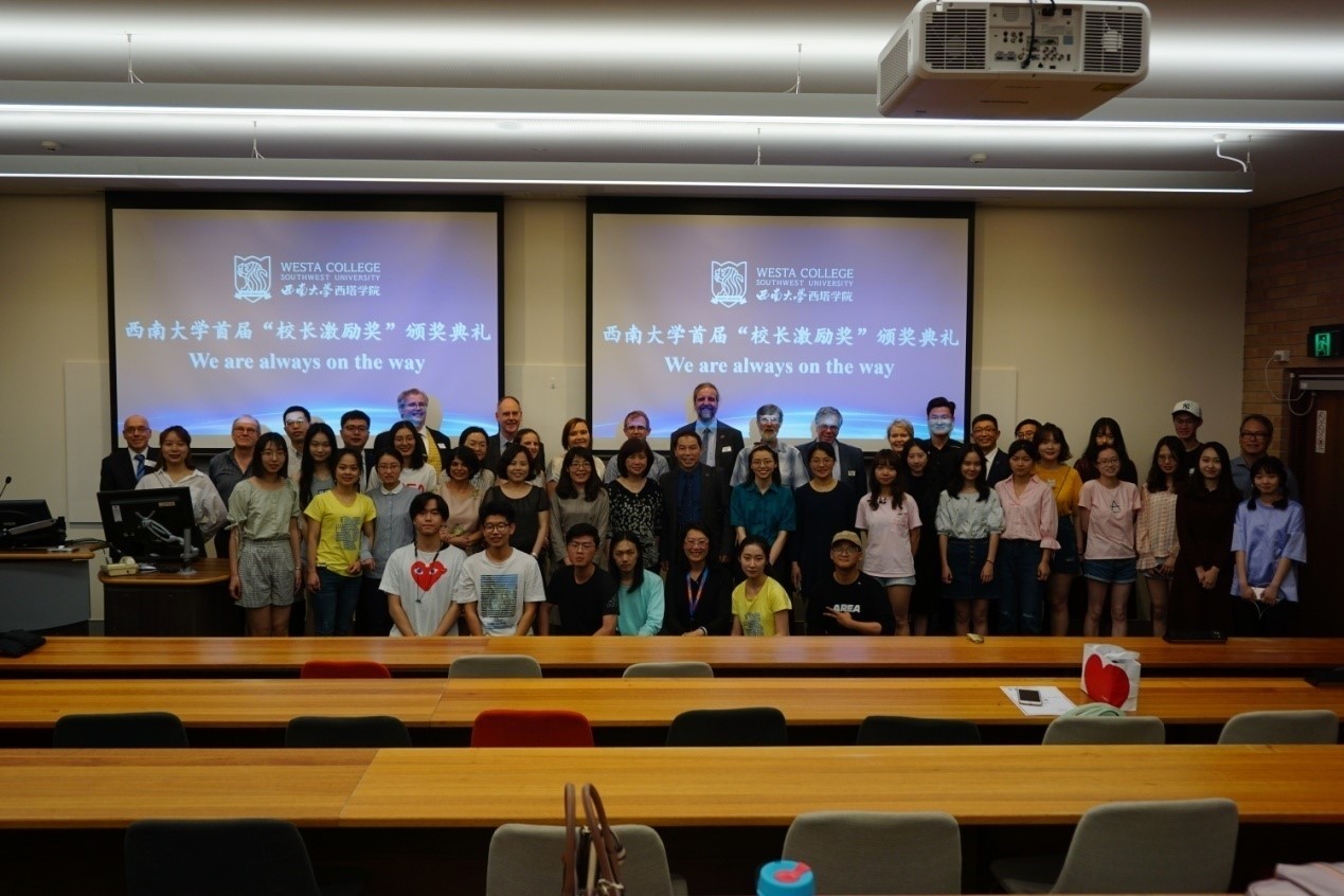 两场颁奖礼分别于当地时间3月20日、3月22日在塔斯马尼亚大学、西澳大学相继举行,典礼由西塔学院党委副书记张琨主持。首先,塔斯马尼亚大学副校长Rob、西澳大学副校长Tony分别致欢迎辞,欢迎代表团赴澳。bat365正版唯一官网张卫国校长发表视频讲话,祝贺获得校长激励奖的同学们,并寄语大家肩负“特立西南,学行天下”的使命,弘扬“含弘光大,继往开来”的精神,向着全球化精英化的目标阔步迈进。赵玉芳院长作为代表团团长致辞,鼓励获奖的同学们发挥榜样力量,希望大家志存高远、刻苦学习、早日成才。西塔学院2016级食品质量与安全专业余文卓、经济学专业曾子芮代表获奖学生发言。最后,代表团一行给30名获奖同学逐一颁发校长激励奖证书。同学们纷纷表示深深感受到了母校对西塔学子的牵挂和关心。西塔学院表示将组织全体学生观看本次颁奖典礼的全程录像,以激励更多西塔学子勇攀高峰,让优良学风在西塔学院蔚然成风。