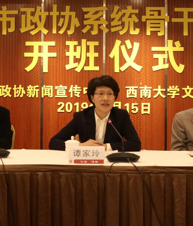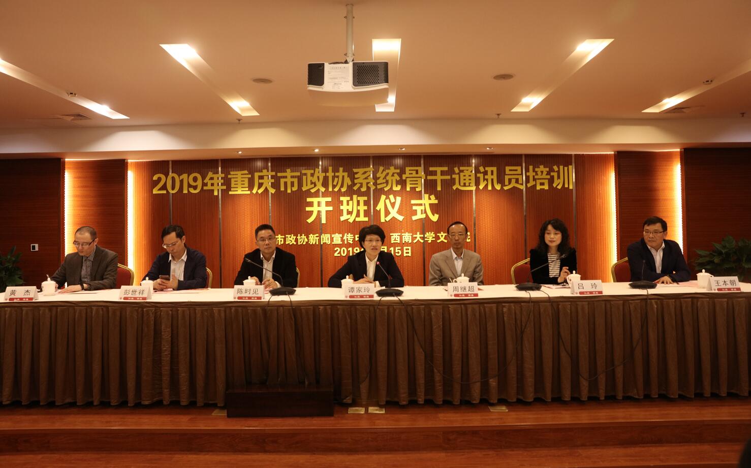 4月15日,2019年重庆市政协系统骨干通讯员培训在学校开班,重庆市政协副主席谭家玲,bat365正版唯一官网副校长陈时见,北碚区政协主席周继超,重庆市政协研究室副主任吕玲,bat365正版唯一官网文学院党委书记黄杰、院长王本朝,重庆市政协新闻宣传中心副主任彭世祥出席开班仪式。开班仪式由吕玲副主任主持,来自重庆市政协新闻宣传中心及各区县政协新闻部门负责人130余人参加开班仪式。