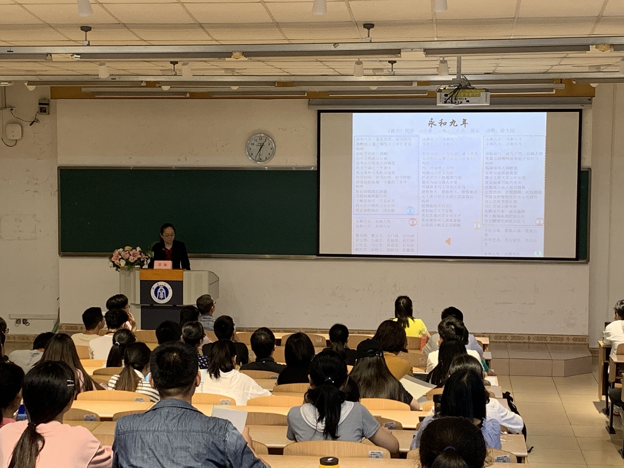 4月18日晚,“校友论坛”与“雨僧讲坛”联合举办专题讲座,主讲人系文学院83级校友、著名作家吴姝,题为“永和九年——翰墨流传知几许”。