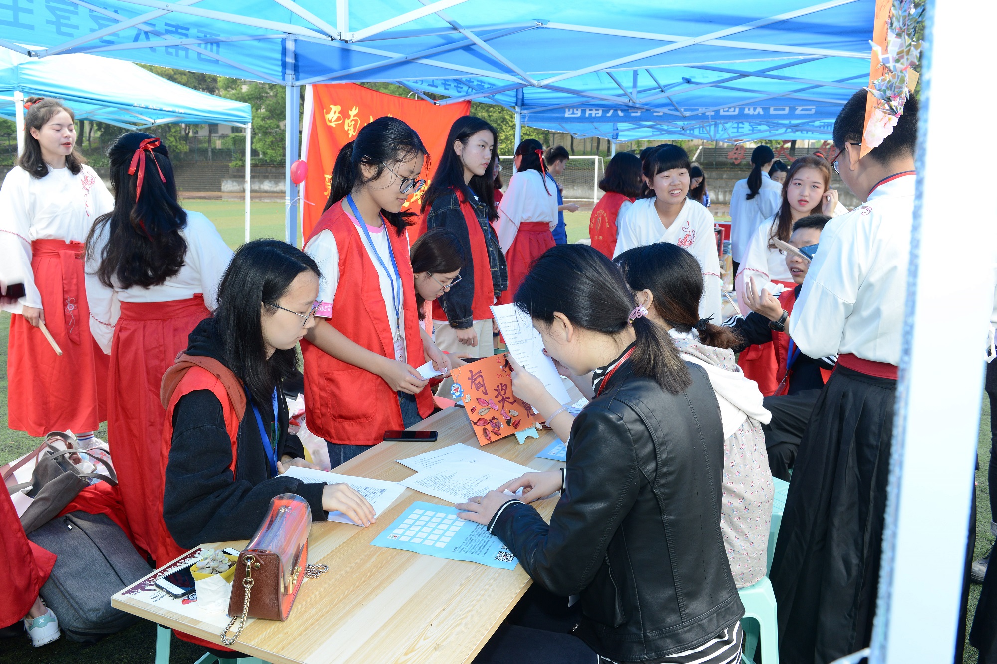 4月20日,学校第二届“校园开放日”活动之“招生咨询会”在第三运动场举行,活动由招生就业处、研究生院、国际合作与交流合作处共同承办。校长张卫国、党委副书记潘洵到现场考察指导。