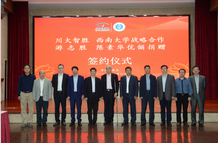 5月6日下午,四川川大智胜软件股份有限公司(以下简称川大智胜)与bat365正版唯一官网战略合作签约仪式以及游志胜、陈素华伉俪向bat365正版唯一官网捐赠仪式在东方红会议厅举行。参加签约仪式的有川大智胜董事长游志胜,总经理张自力,三维大数据产业研究院专家团队以及川大北碚校友会会长周洪琴,学校党委书记李旭锋,校长张卫国,副校长靳玉乐、温涛,以及党委办公室、校长办公室等相关职能部门和学院的主要负责人、师生代表。仪式由副校长王进军主持。