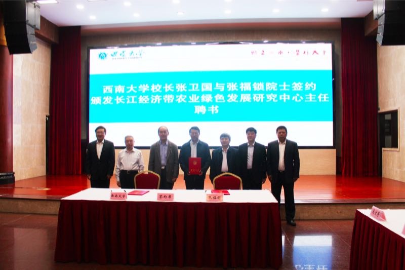5月5日,学校长江经济带农业绿色发展研究中心(以下简称“研究中心”)揭牌仪式在东方红会议厅召开。中国工程院原副院长刘旭院士,贵州大学校长宋宝安院士,向仲怀院士、张福锁院士及团队成员,重庆市政协副主席陈贵云、市教委副主任刘晏兵、市科技局巡视员王力军、市规划和自然资源局总工程师宗松、市农业农村委副主任刘保国、市科协副主席程伟、市农科院副院长刘剑飞、市生态环境局科技处处长曹永进,学校党委书记李旭锋,校长张卫国,副校长陈时见、王进军,相关职能部门和学院负责人出席会议,会议由副校长王进军主持。