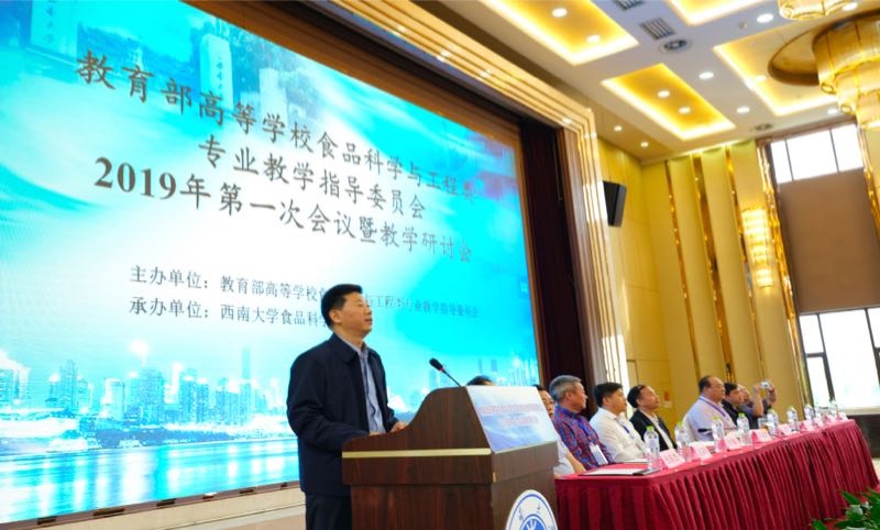 5月11日,教育部高等学校食品科学与工程类专业教学指导委员会2019年第一次会议暨教学研讨会在重庆海宇酒店召开。会议由教育部高等学校食品科学与工程类专业教学指导委员会(以下简称食品专业教指委)主办,bat365正版唯一官网食品科学学院承办。食品专业教指委委员及来自全国165个单位的500多名领导及老师参加了会议。会议由赵国华教授主持。靳玉乐副校长致欢迎辞。