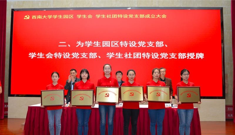 随后,会议为学生园区、学生会、学生社团特设党支部授牌。