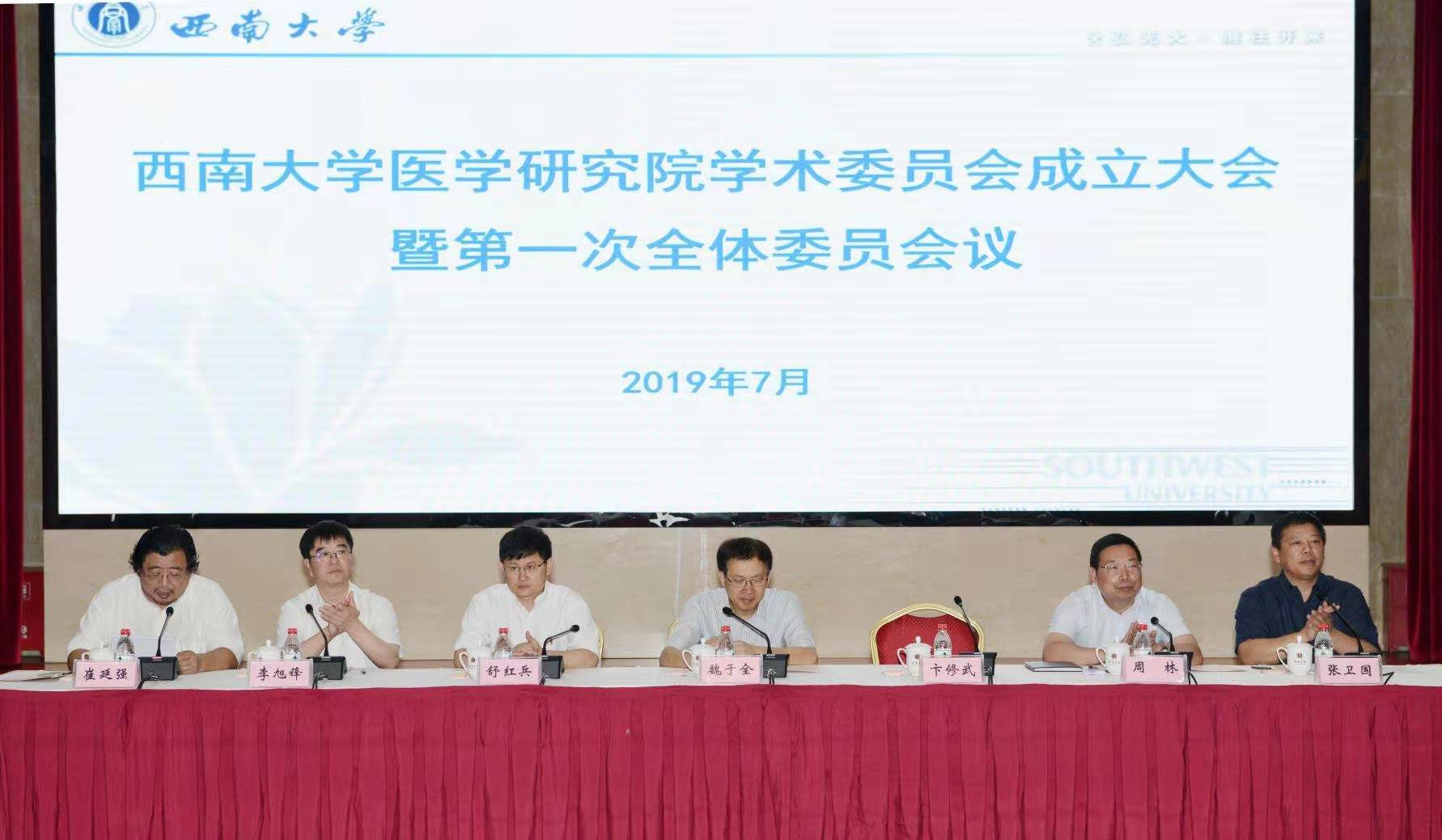 7月15日,学校召开医学研究院学术委员会成立大会暨第一次全体委员会会议。四川大学魏于全院士、武汉大学医学研究院院长舒红兵院士、陆军军医大学卞修武院士等学术委员会委员,重庆市卫健委周林副主任,学校党委书记李旭锋,校长张卫国,副校长崔延强,bat365正版唯一官网附属医院、重庆市第九人民医院,bat365正版唯一官网附属公卫医院、重庆市公共卫生医疗救治中心,bat365正版唯一官网附属心理医院、重庆市精神卫生中心的领导以及学校相关专家和职能部门负责人出席。学术委员会成立大会由崔延强副校长主持。