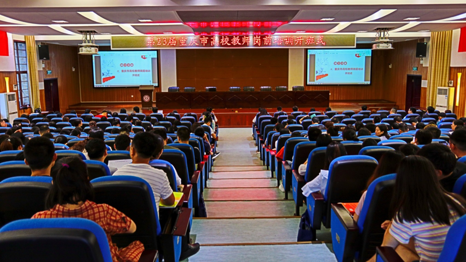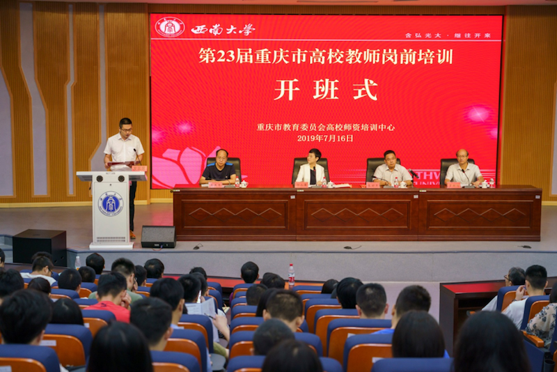 7月16日,第23届重庆市高校教师岗前培训开班式在学校举行,重庆市委教育工委委员、市教委总会计师郭小萍,学校副校长陈时见,市教委人事处副处长齐正军出席仪式,开班仪式由培训学院院长罗朝明主持。