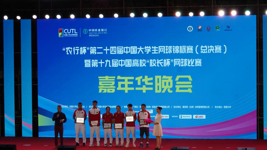 7月21日,“农行杯”第二十四届中国大学网球锦标赛(总决赛)暨第十九届中国高校“校长杯”网球比赛在bat365正版唯一官网中心体育馆举行开幕式、嘉年华晚会暨团体赛颁奖仪式,本次大赛由中国大学生体育协会主办,中国大学生体育协会网球分会执行,bat365正版唯一官网承办。来自全国八大赛区的180所高校运动员、教练员、裁判员参加了此次典礼。