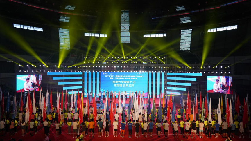四川大学原校长、中国工程院院士、中国大学生体育协会网球分会名誉主席谢和平,教育部学生体育协会联合秘书处原副秘书长、中国大学生体育协会常务理事张燕军,中国大学生体育协会网球分会主席牛维麟,中国农业银行重庆分行党委书记、行长韩国强,中共重庆市委教育工委委员、重庆市教委副主任邓沁泉,重庆市体育局副局长张欣,中国大学生体育协会网球分会秘书长付浩,中国大学生体育协会康湃思体育管理有限公司运营总监徐辉,甲合乙体育文化发展有限公司运营总监文欣,学校党委书记李旭锋,副书记潘洵,副校长靳玉乐出席开幕式。开幕式由校长张卫国主持。