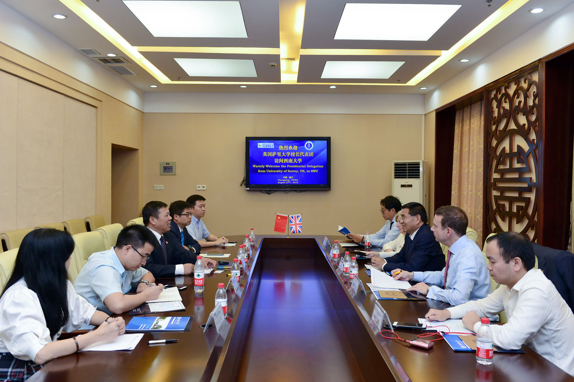 8月27日,萨里大学逯高清校长一行5人来校访问,张卫国校长会见客人。