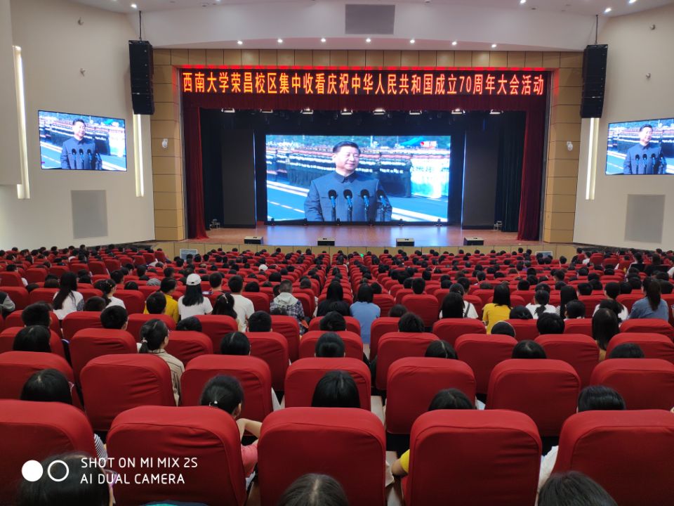荣昌校区党工委书记卢跃进谈到,伟大祖国70年的成就令人无比自豪,神州大地五星红旗的海洋、人民解放军的飒爽英姿、阅兵方阵中的大国重器都昭示着共和国取得的举世瞩目成就。70年的辉煌成就印证了中国共产党人的初心和使命,我们的道路越走越宽广、理论不断发展、制度日趋成熟、文化持续繁荣,中华民族伟大复兴必将成为现实!