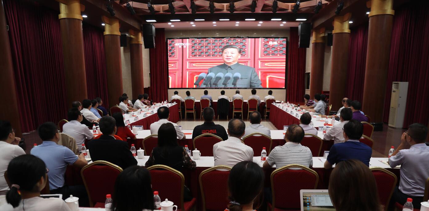 10月1日,中共中央、全国人大常委会、国务院、全国政协、中央军委在北京天安门广场隆重举行庆祝中华人民共和国成立70周年大会,中共中央总书记、国家主席、中央军委主席习近平发表重要讲话。为深入学习领会习近平总书记重要讲话精神,共庆新中国70华诞,学校组织师生员工集中收看庆祝大会直播并举行座谈。