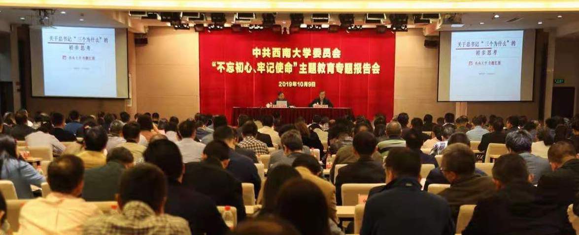 10月9日上午,学校在国际学院报告厅开展“不忘初心 牢记使命”主题教育专题报告会。全体中层领导干部参加学习,党委副书记安春元主持报告会。重庆市社科联党组书记、专职副主席杨清明以《关于总书记“三个为什么”的初步思考》为主题作专题报告。