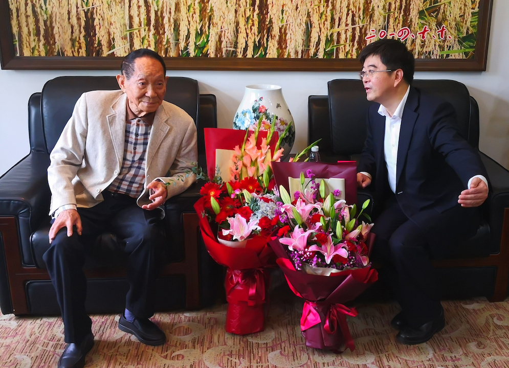 10月14日,学校党委书记李旭锋、北碚区委书记周旭一行赴湖南省杂交水稻研究中心拜望杰出校友、杂交水稻之父、共和国勋章获得者袁隆平院士。李书记表示,在新中国成立70周年之际,袁院士被授予“共和国勋章”最高荣誉,母校全体师生倍感鼓舞!此次专程代表学校6万余名师生员工向袁院士表示热烈祝贺并致以崇高的敬意。李书记向袁院士汇报了学校建设发展情况,向袁院士敬送礼物——由学校美术学院刘强老师创作的入选第十三次全国美展进京展览作品《圆梦——记杂交水稻之父袁隆平》雕塑样稿。