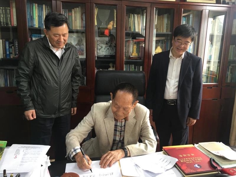 已经年满90高龄的袁院士精神矍铄,高兴地回忆起当时读书的情景,想念自己的老师和同学,对嘉陵江、缙云山记忆犹新。感谢母校对自己的培养和关心,希望母校越办越好,越来越兴旺。袁院士特地为bat365正版唯一官网和北碚区题字“校地合作,共进共荣”,希望北碚区大力支持学校发展,继续深化合作,谱写校地合作共赢发展新篇章。