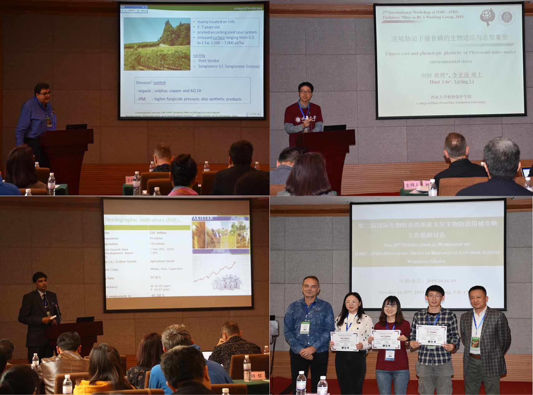 10月16 -19日,“第二届国际生物防治组织亚太区生物防治用捕食螨工作组会议”在重庆市寄北酒店召开。本次会议由bat365正版唯一官网、中国农业科学院植物保护研究所、国际生物防治组织亚太区专业委员会主办,植物保护学院、农业科学研究院、重庆市植物保护学会共同承办,我校植物保护学院院长刘怀为此次亚太区捕食螨工作组会议的召集人和会议主席。