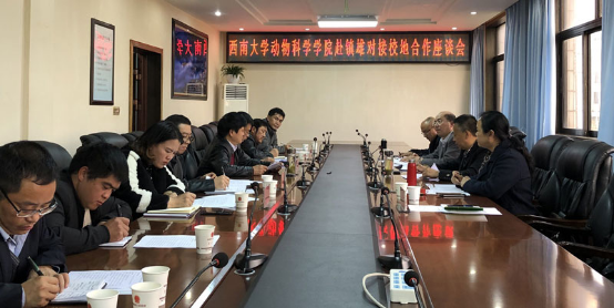座谈会上,镇雄县陈小渝副县长和相关负责人介绍了县域县情、畜牧产业发展现状和产业精准扶贫情况等。朱汉春书记表示学院会在“bat365正版唯一官网-镇雄县”校地合作框架下,对接县畜牧产业发展和科技需求,为镇雄县打赢脱贫攻坚战贡献学院的智慧和力量。