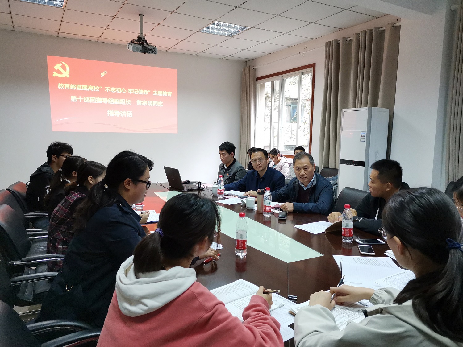 11月15日下午,教育部直属高校“不忘初心、牢记使命”主题教育第十巡回指导组副组长黄宗明深入物理科学与技术学院本科生低年级党支部,指导该党支部11月主题党日活动暨“不忘初心、牢记使命”专题组织生活会。物理科学与技术学院党委书记李建光出席会议,学校党委组织部相关负责同志、党支部全体党员和积极分子代表参加活动。党支部书记贺颖同志主持会议。