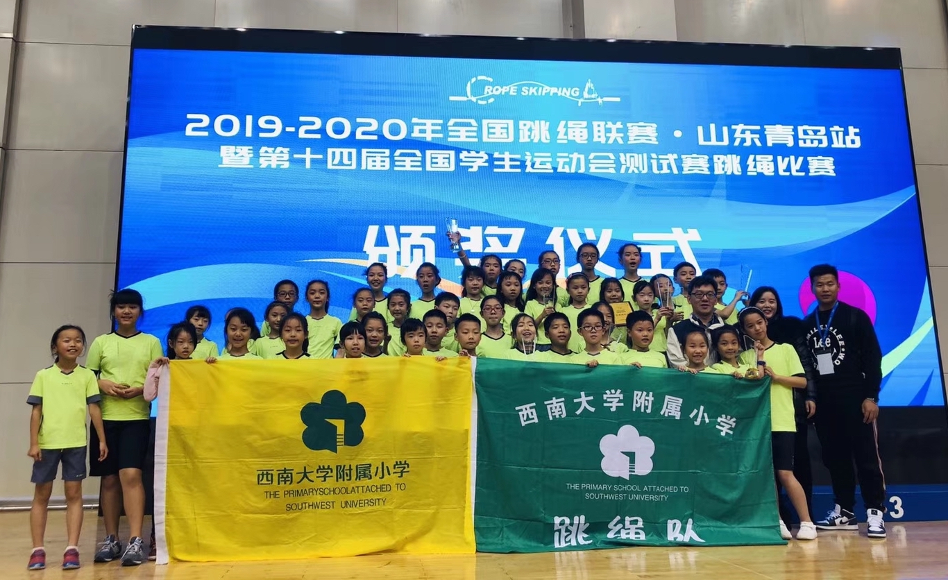 11月25日,“2019-2020年全国跳绳联赛暨第十四届全国学生运动会跳绳项目测试赛”在山东青岛圆满落幕,bat365正版唯一官网附属小学花样跳绳代表队荣获“优秀组织奖”,并取得8金9银3铜的骄人成绩。