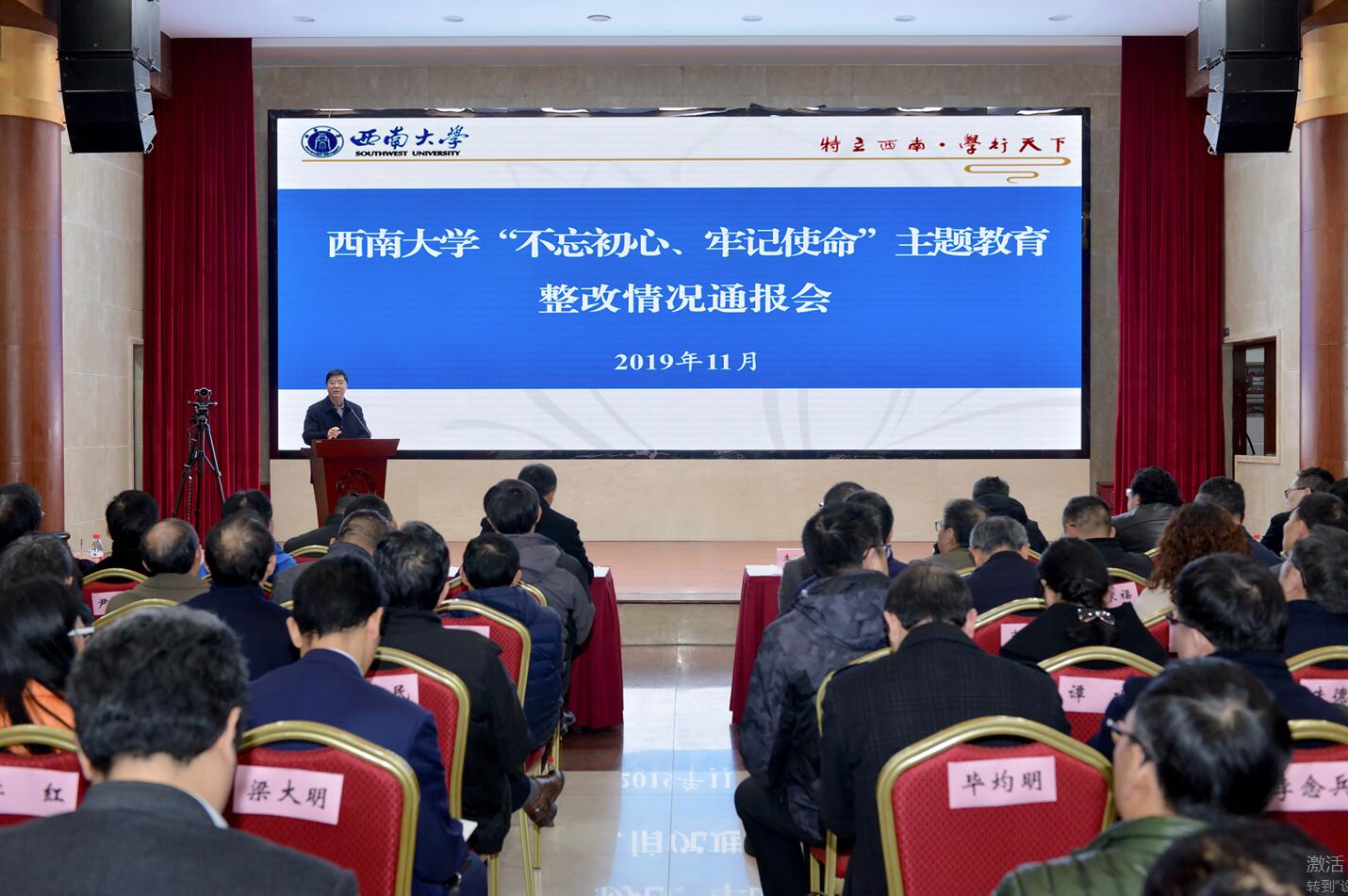 为进一步巩固“不忘初心、牢记使命”主题教育整改成果,回应师生关切,接受师生监督,11月28日下午,学校在东方红会议厅召开“不忘初心、牢记使命”主题教育整改情况通报会。全体在校校领导,各二级党组织书记、各学院(部)院(部)长,机关职能部门、直(附)属单位、企业单位主要负责人参加会议。校党委书记、学校主题教育领导小组组长李旭锋主持会议。