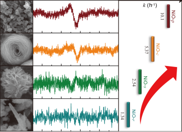 过渡金属氧化物催化剂在多相催化中有着广泛应用。改变形貌特征可以显著调控催化活性,其中的关键问题在于揭示形貌效应与催化活性的构效关系,明确催化活性的结构起因。研究形貌效应与催化活性的构效关系,对于从微观层面有效调控活性位点,合理设计新型催化材料具有现实意义。本工作以NiO作为模型催化剂,利用溶剂热处理调变Ni(OH)2(α或β相)前驱体形貌以及热处理工艺,制得了四种形貌的模型催化剂;实验探究和理论计算揭示了形貌效应影响下的催化活性产生差异的起因,相较于比表面积、粒径分布、晶面等因素,氧空位(VO)浓度被证实是引起活性差异的主要起因;并阐明了催化材料活化过硫酸盐涉及的非自由基机制及目标有机物的降解路径。这项工作为理解形貌效应调控下的催化活性起因,以及设计高活性形貌依赖型金属氧化物催化剂提供了思路和研究基础。