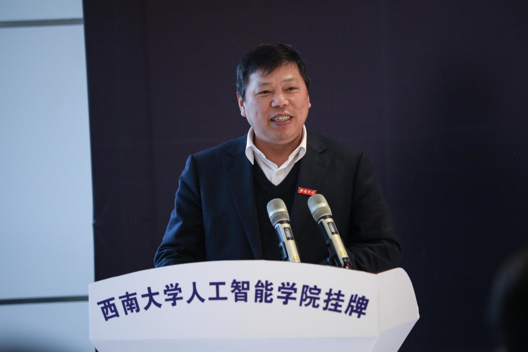 张卫国校长代表学校对在场领导和嘉宾表示热烈欢迎和衷心感谢,介绍了学校人工智能发展的基本情况和学校在基础教育方面所做的工作。张卫国校长指出,学校深刻的认识到作为地属重庆的大学想要坚持扎根中国大地办教育,首先必须要坚持扎根巴渝大地,积极服务重庆当地经济社会发展。当前,学校正在深入贯彻落实习近平总书记对重庆提出的“两点”定位、“两地”“两高”目标、发挥“三个作用”的重要指示精神,积极实施助力重庆行动计划。希望通过区校双方的精诚合作、共同努力,为重庆实现高质量发展,创造高品质生活贡献力量。