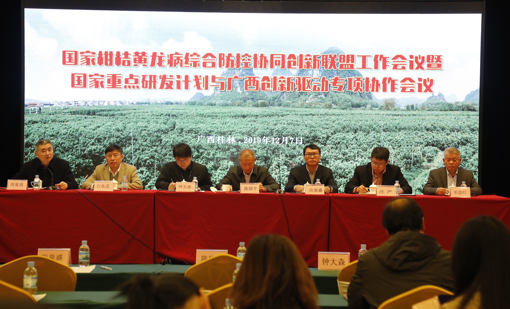12月6日至8日,国家柑桔黄龙病综合防控协同创新联盟工作会议暨国家重点研发计划与广西创新驱动专项协作会议在广西桂林市召开。会议由联盟理事长、学校学术委主任周常勇研究员主持。