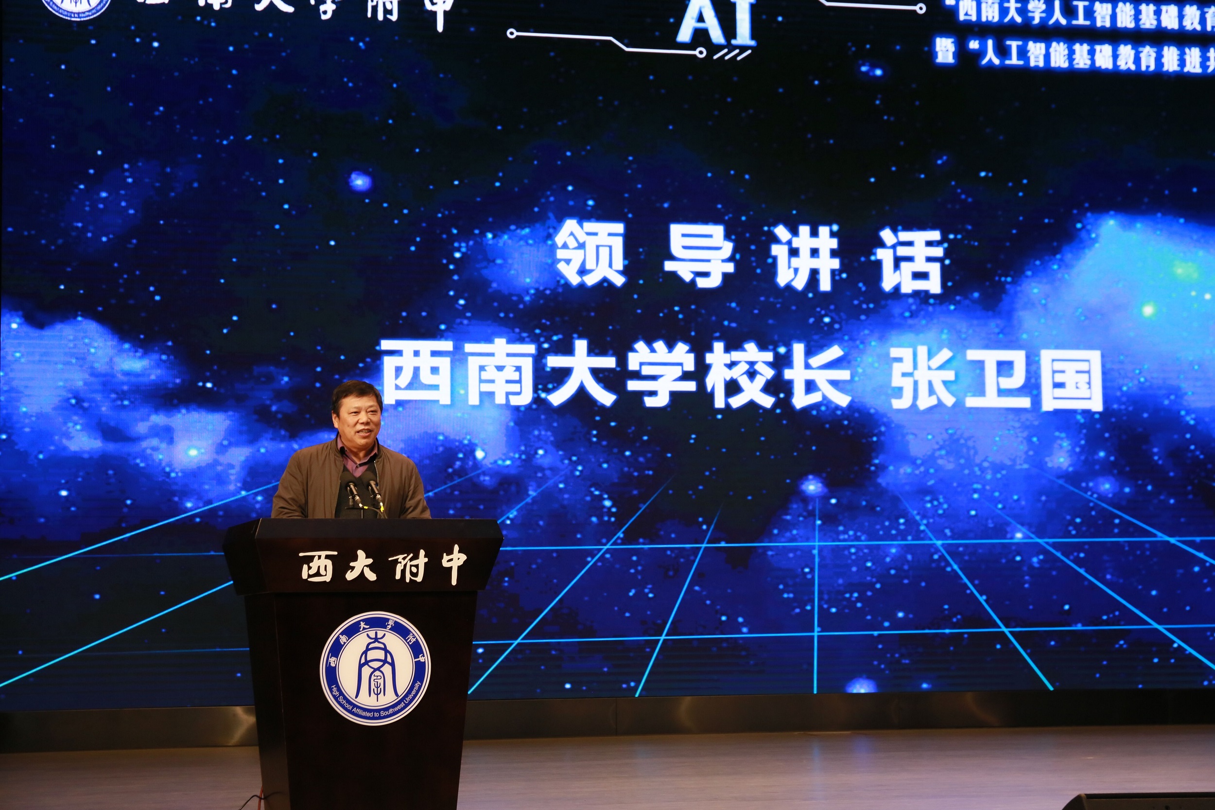 1月3日,由学校人工智能学院和学校附属中学联合创办的“bat365正版唯一官网人工智能基础教育研究中心” 正式揭牌,“人工智能基础教育推进共同体”同时发起。重庆市科协党组成员、二级巡视员牛杰,校长张卫国,重庆市教科院副院长万礼修,重庆市科技局高新处处长许志鹏,副校长陈时见,附属中学校长欧健出席会议。