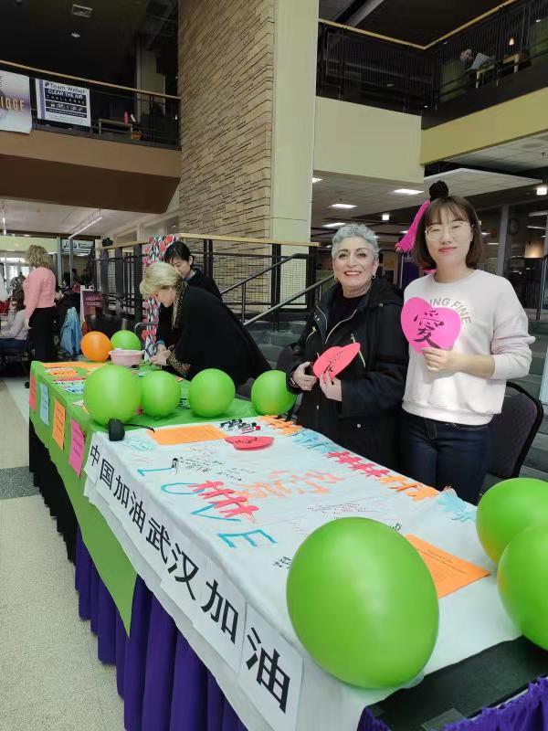 此次活动一方面为当地师生进行汉字“爱”的毛笔书法书写展示,为他们讲解汉字“爱”中所包含“家庭”、“爱心”和“朋友”的内涵,同时还邀请当地师生为中国抗击冠状病毒肺炎疫情写下祝福的话语,传递“爱”的信息,用实际行动阐释“爱”的真谛,为祖国祝福、为武汉加油。该校护理学院院长亚思曼女士深情的说:“相信武汉一定能战胜疫情!希望中国人民能尽快走出困境!”