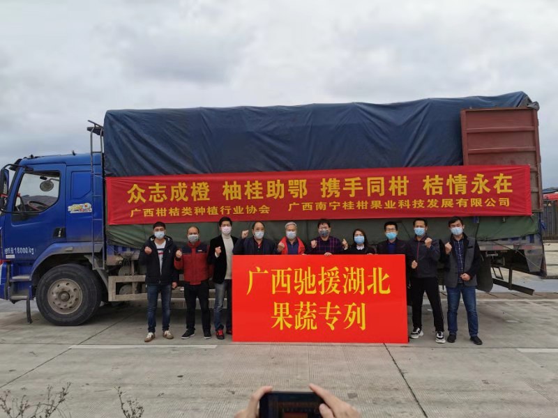 黄立祝介绍道,“短短几天内,广西柑桔协会会员捐赠了100多吨、价值100万元的柑桔。由自治区政府牵头、农业厅和商务厅协调安排的火车专列,陆续把会员们捐赠沃柑送往武汉,早日让武汉在抗击疫情的一线人员和病患者品尝到广西柑桔人的一片‘柑’心!”