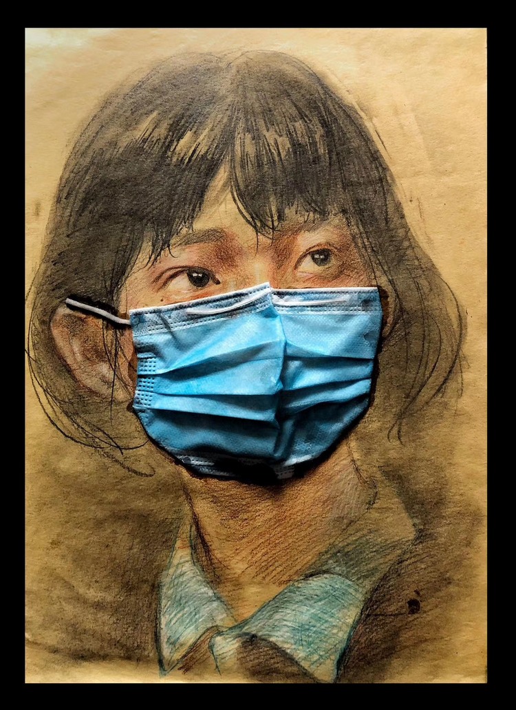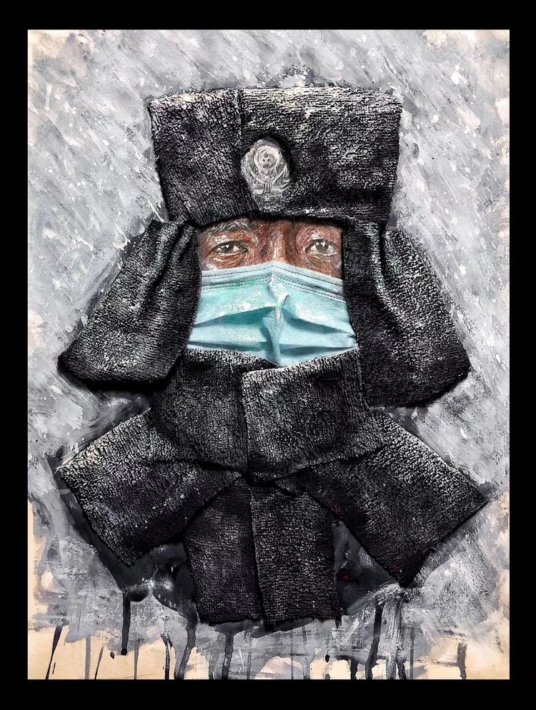 近日,bat365正版唯一官网美术学院本科2018级雕塑专业学生刘昱伽在家中拿起画笔,利用废弃口罩、旧抹布、旧报纸、包装袋等材料,创作出了一幅幅感人的画作。