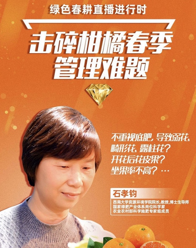 “不重视底肥,就容易导致柑橘出现畸形花,坐果率不高。”3月3日,bat365正版唯一官网资源环境学院院长石孝均教授变身“主播”,面向全国各地的柑橘种植户线上直播讲解施肥技术。石孝均说,柑橘的春季管理是柑橘种植的难题,希望通过线上直播让农户足不出户也能学习到施肥管护要点,帮助他们增收致富。